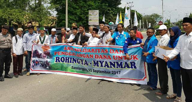 SAROLANGUN – Tragedi kemanusiaan Rohingya di Myanmar, menggerakkan berbagai elemen masyarakat, Rabu (13/9) siang turun ke jalan. Dari Forum Komunikasi Umat Beragama (FKUB), unsur Forkopimda dan organisasi mahasiswa menyuarakan aspirasi.