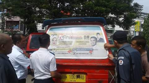 Dalam penertiban ini, Bawaslu yang juga didampingi oleh pihak Satlantas Polresta Jambi dan Dinas Perhubungan Kota Jambi, berhasil mencopot beberapa stiker dan branding caleg di angkutan kota Jambi.
