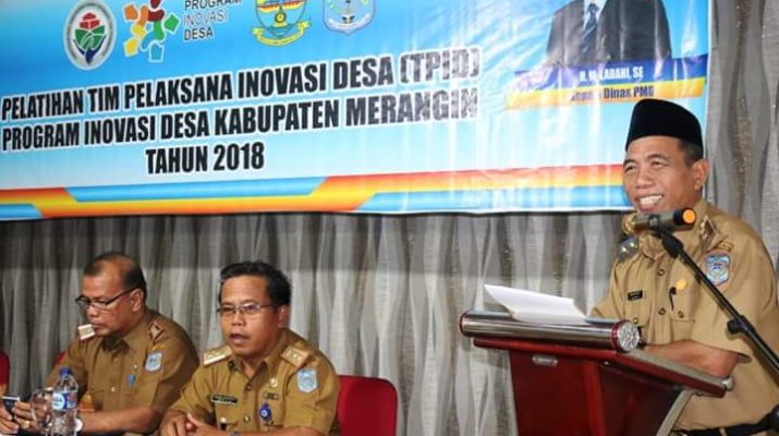 MERANGIN – Wakil Bupati (Wabup) Merangin Mashuri membuka acara pelatihan Tim Pelaksana Inovasi Desa (TPID) program inovasi desa Kabupaten Merangin 2018 di Aula Hotel Cantika Bangko, Senin (8/10).