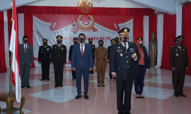 Upacara Hari Bhayangkara ke-75 secara virtual ini, yang di gelar Di Ruang Kaca Rumah Dinas Bupati Batanghari, Kamis (1/7/2021).