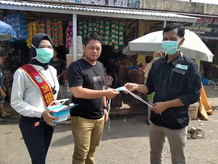 Menyisir pasar atas Sarolangun, dalam rangka pembagian masker gratis, kepada para pedagang dan konsumen.