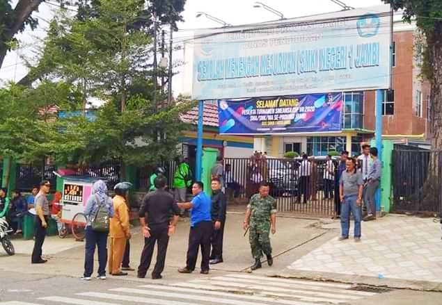 Bentrok pelajar di Jambi dua sekolah antara SMKN 3 Kota Jambi, dan SMKN 1 Kota Jambi ini, terjadi di halaman SMKN 1 Kota Jambi sekitar pukul 16.00, Senin (24/02/2020).