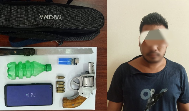Tidak hanya itu, tersangka juga memiliki senpi yang di duga miliknya sendiri.