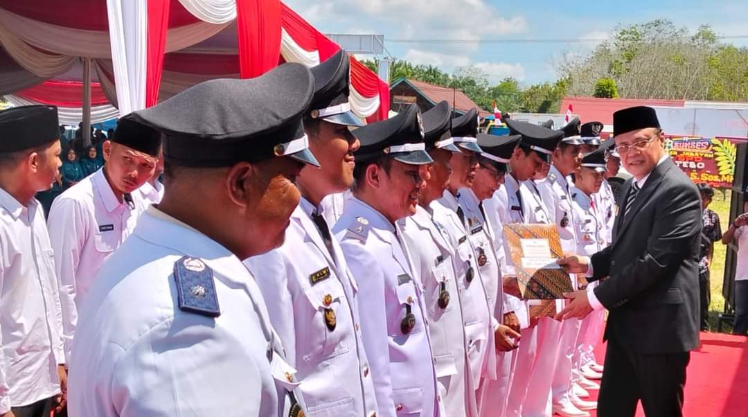 Pengukuhan Kades dan Anggota BPD se Kabupaten Tebo ini digelar di lapangan Garuda Desa Perintis Jaya, Kecamatan Rimbo Bujang, Kabupaten Tebo, Jambi.