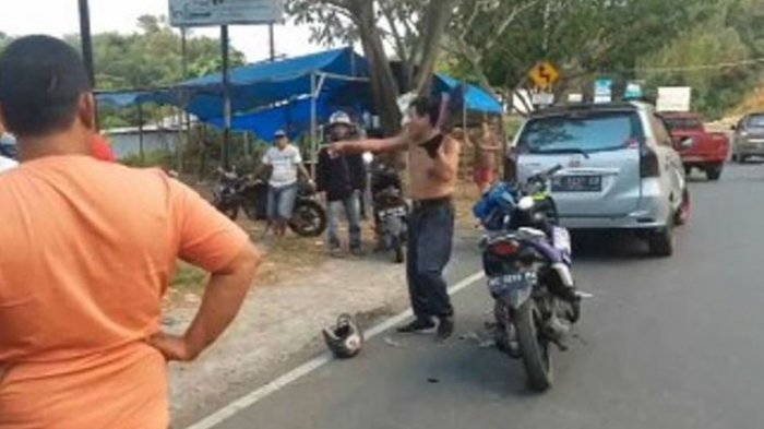 MAMUJU – Salah seorang pengendara sepeda motor di Mamuju Sulawesi Barat, bikin geger. Pasalnya, Ia menolak ditilang oleh polisi, kemudian mengamuk membuka baju dan membanting helemnya hingga pecah hancur berantakan kacanya di tengah jalan raya. Sabtu (1/9) Siang.