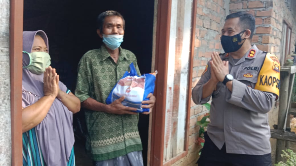 Kapolres Muaro Jambi AKBP Yuyan Priatmaja turun langsung memberikan bantuan sosial Sembako dengan mendatangi kediaman warga terdampak Covid-19.