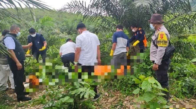 Selanjutnya saksi langsung melaporkan perihal penemuan mayat tersebut kepada Ripal (25) anak korban, yang sebelumnya telah melaporkan bahwa orang tuanya sejak hari Sabtu (27/09/2025) tidak pulang-pulang pada saat pamitan mencari brondolan sawit.