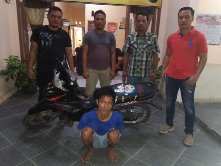 “Dari tangan tersangka kita berhasil mengamankan barang bukti berupa satu unit sepeda motor merk Honda Revo, dan tersangka akan dijeratkan hukuman maksimal enpat tahun kurungan, ” pungkasnya.