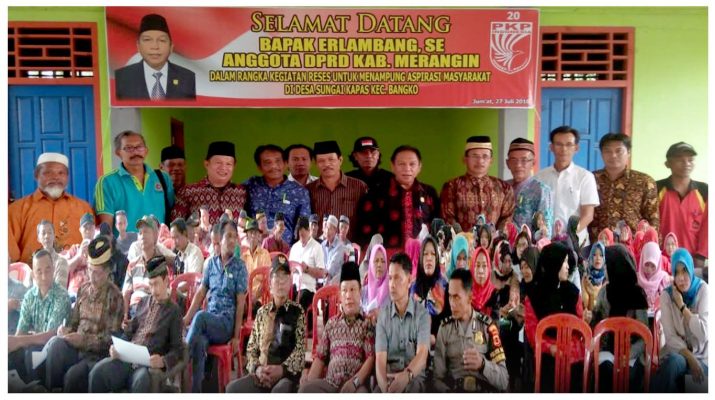 MERANGIN – Salah satu anggota Dewan Perwakilan Rakyat Daerah (DPRD) Kabupaten Merangin, Erlambang, SE, menggelar reses untuk menyerap aspirasi masyarakat di tiga Desa, yakni Desa Bukit Beringin, Desa Sungai Kapas dan Desa Sungai Putih, Kecematan Bangko, Jum’at kemarin (27/7).