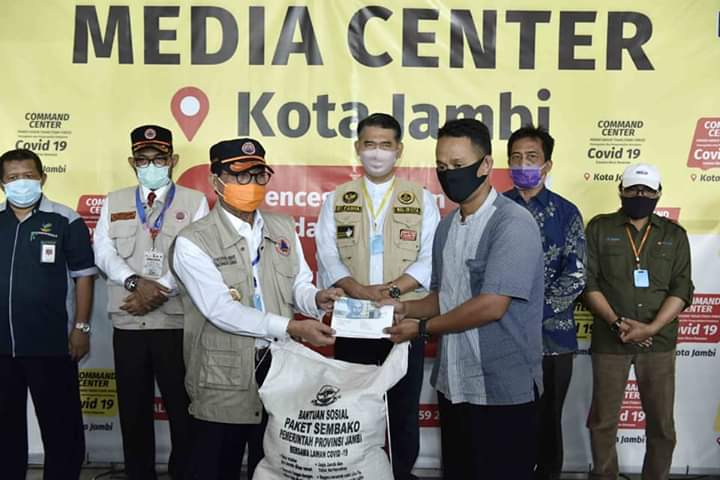Penyerahan bantuan JPS Covid-19 tersebut, berlangsung di Posko Gugus Tugas Kota Jambi kantor Damkar, Senin (1/6/20).