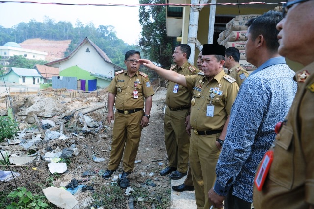 Usai memantau kondisi jalan dalam Pasar Baru Bangko, bupati langsung memantau sejumlah proyek fisik dalam Kota Bangko. Terutama proyek fisik di kawasan Sungai Misang Bangko. (rdc/hms)