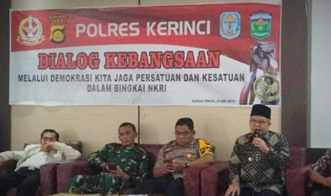 KERINCI – Menjadi Narasumber Dialog Kebangsaan yang di selenggarakan Polres Kerinci, Kamis (23/05/2019) Wakil Bupati Kerinci Ami Taher mengajak seluruh masyarakat untuk tidak terpancing oleh isu-isu provokatif yang bisa merusak persatuan dan kesatuan bangsa.