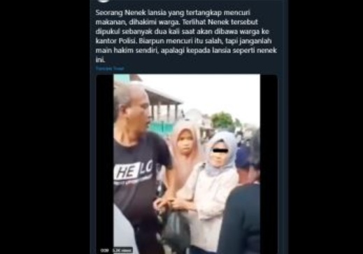 Sang pengunggah video menambahkan keterangan, “Biarpun mencuri itu salah, tapi janganlah main hakim sendiri, apalagi kepada lansia seperti nenek ini”.