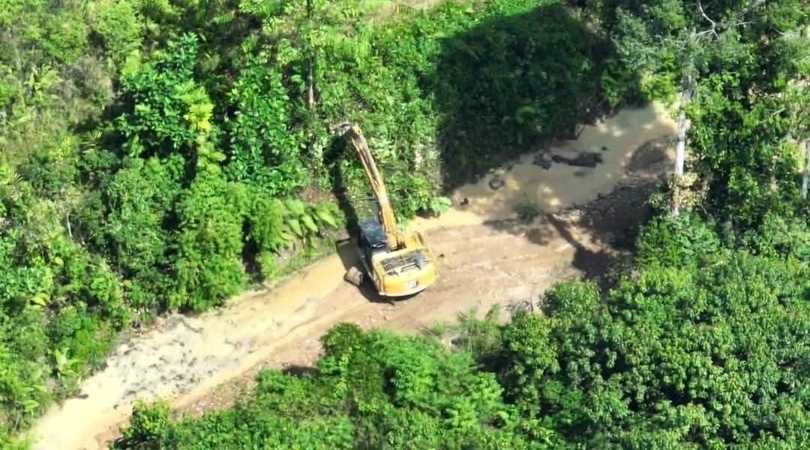 Masuknya alat berat jenis excavator ke kawasan konservasi di wilayah Nalo Tantan saat publik menyorot Jangkat.