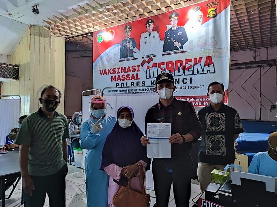 Vaksinasi gratis bagi masyarakat itu, di laksanakan Pemkot bersama TNI Polri,pada tanggal 19 hingga 22 Agustus 2021. Mulai dari dari pukul 08.16 WIB, bertempat gedung nasional Sungai Penuh.