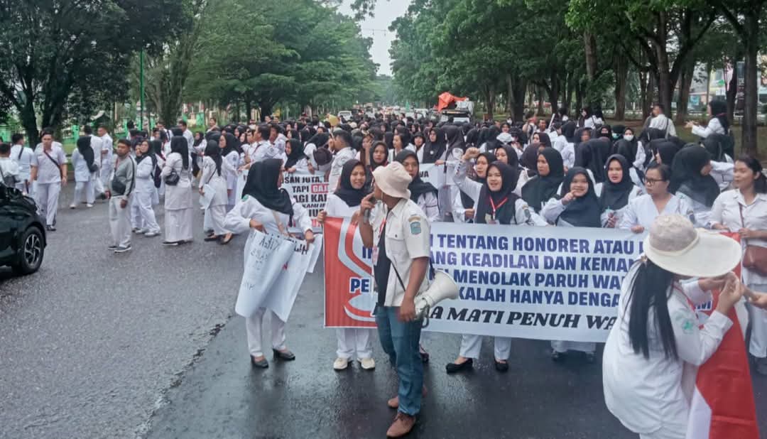 Dari sini, para honorer Nakes Merangin long march ke Kantor DPRD Merangin.