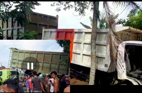 Selain itu, juga satu dari mobil truk ini masuk ke semak-semak pinggiran rumah warga. Sedangkan yang satunya, tergeletak di sebagian badan jalan.