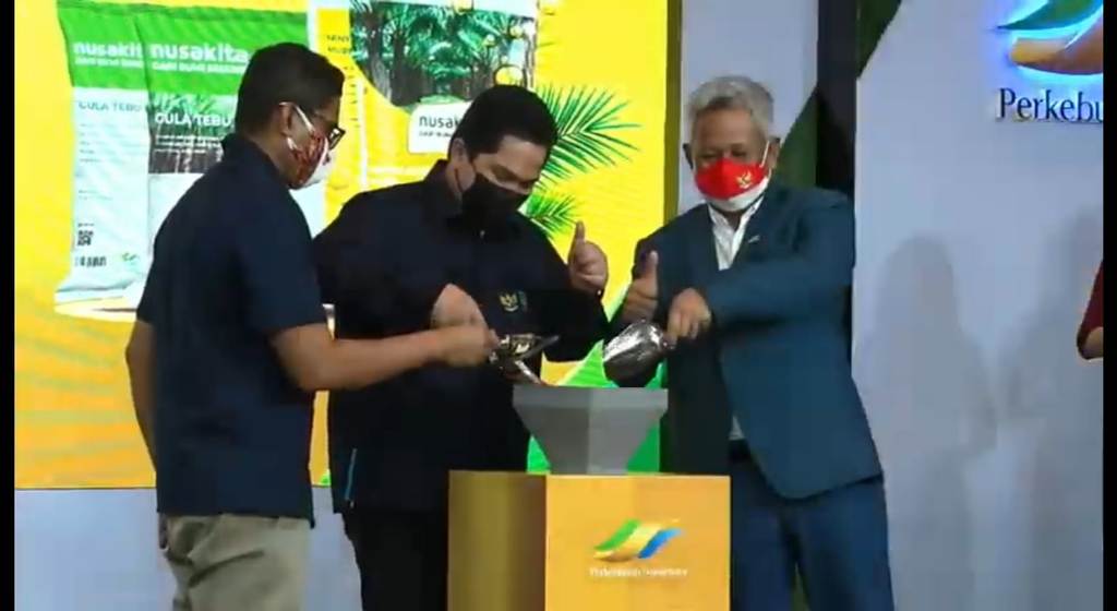 JAKARTA – PTPN Group memperkuat brand di pasar ritel, dengan launching produk nasional dengan nama Nusakita, Selasa (17/8/2021). Produk PTPN tersebut yakni minyak goreng, gula pasir, teh, dan kopi.