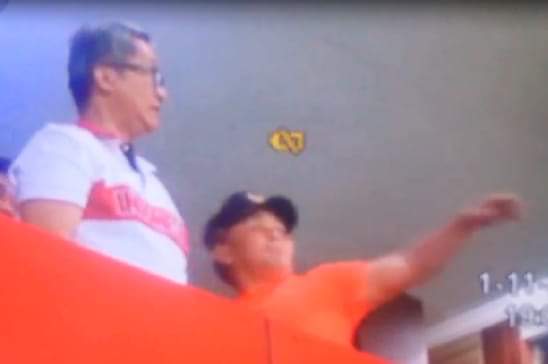 Dalam video yang beredar, Sugianto Sabran, yang mengenakan kaus warna oranye dan topi warna hitam, melempar botol air mineral dari tribun VVIP. Tidak lama dia terlihat marah-marah sambil menunjuk-nunjuk sebelum turun dari tribun VVIP ke pinggir lapangan.