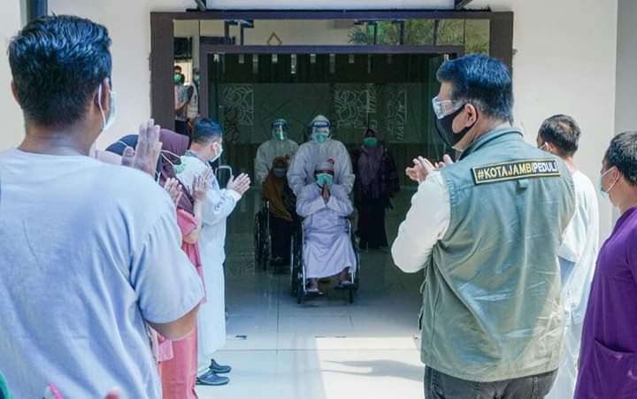 Kepulangan keduanya langsung disambut oleh Wali Kota Jambi, H. Syarif Fasha, bersama jajaran perawat, tim dokter, Kadis Kesehatan Kota Jambi, Direktur RSUD H. Abdul Manap, Camat dan Lurah tempat kedua pasien tersebut berdomisili, bertempat di gedung perawatan khusus pasien Covid-19 (14/6).