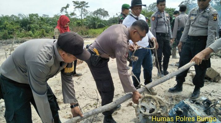 BUNGO – Kapolres Bungo AKBP Budiman Bostang Panjaitan, memimpin langsung tim gabungan Operasi Pemberantasan Pertambangan Emas Tanpa Izin (PETI). Dengan titik sasaran lokasi, berada di sebelah kanan Run Way Bandara Muara Bungo. Yang terletak di wilayah Desa Sungai Buluh, Kecamatan Rimbo Tengah, Kabupaten Bungo, Selasa (05/12/17) sekitar pukul 09.00 Wi, WIB.