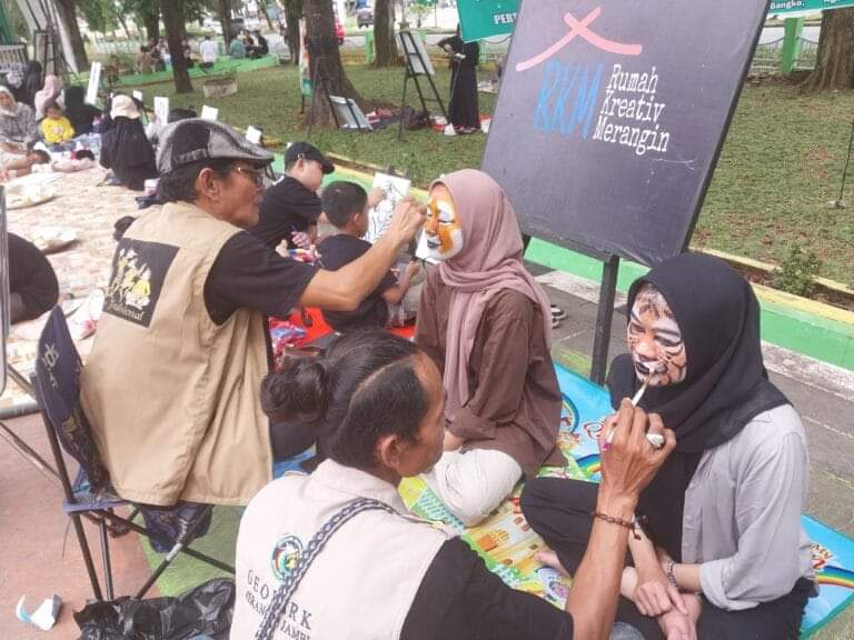 Dari pantauan bentuk simpatik seniman pada habitat Harimau sumatra itu, seniman Merangin dari yang yunior sampai senior terlihat unjuk kebolehan, ada yang melukis wajah dengan wajah harimau dan demo lukis dengan tema Harimau sumatra diatas canvas.