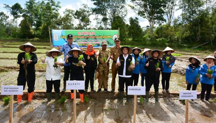 Gubernur bersama Bupati melakukan penanaman padi di lokasi luas tambah tanam padi jajar legowo, melepaskan benih ikan yang merupakan bantuan langsung kepada masyarakat, dan melakukan penanaman perdana jagung komposit di lahan perluasan areal tanam baru yang merupakan wilayah dari Desa Pentagen.