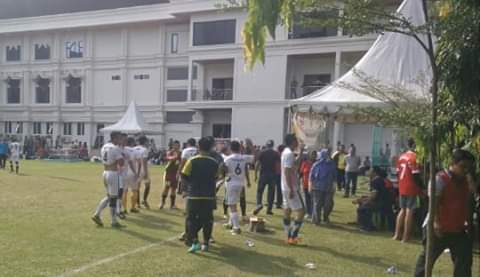 Dilapangan terlihat, masing-masing suporter saling dukung dan bersorak, guna untuk memberikan semangat kepada tim mereka yang bertanding.