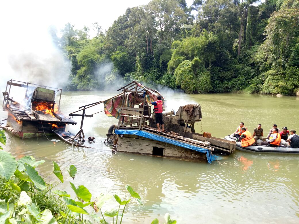 SAROLANGUN – Operasi penertiban dan penindakan usaha Penambangan Emas Tanpa Izin (PETI) oleh Tim gabungan Ops PETI Polres Sarolangun, bersama Kodim 0420 Sarko, Satpol PP, dan BNPB Kabupaten Sarolangun, kembali membuahkan hasil. 4 unit kapal yang disinyalir untuk kegiatan penambangan emas ilegal dimusnahkan.