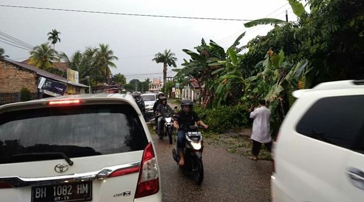JAMBI – Akibat hujan yang disertai angin kencang, Rabu (13/3) membuat pohon dikawasan Telanaipura tepatnya di jalan kantor pajak yang lama menuju lorong Sekolah Luar Biasa (LSB) tumbang.