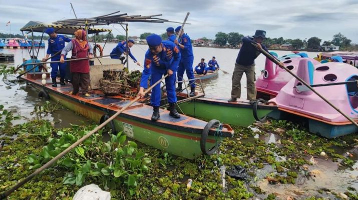 Dengan menggunakan Kapal kebersihan Danau Sipin, sebanyak 20 Personel diterjunkan ke Danau Sipin untuk membantu Komunitas Peduli Danau Sipin (KPDS) melaksanakan kegiatan bersih-bersih sampah.