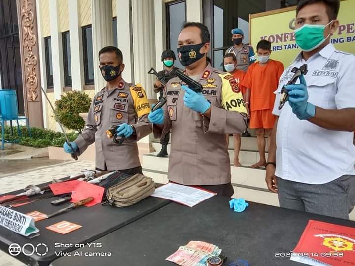 TANJABBAR – Polres ungkap kasus perampokan, atau tindak pidana Curat sadis yang terjadi di rumah H. Ibrahim (50) warga Parit 11, RT 04, Dusun Alam Sari, Desa Sungai Gebar, Kecamatan Kuala Betara pada, Jumat (11/09/20) kemarin.
