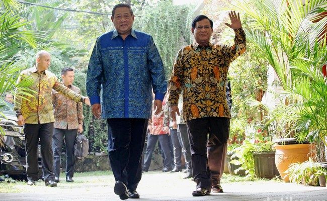 JAKARTA – Pertemuan Ketum Gerindra Prabowo Subianto dan Ketum Partai Demokrat Susilo Bambang Yudhoyono berbuah manis. Gerindra dan PD sepakat berkoalisi.