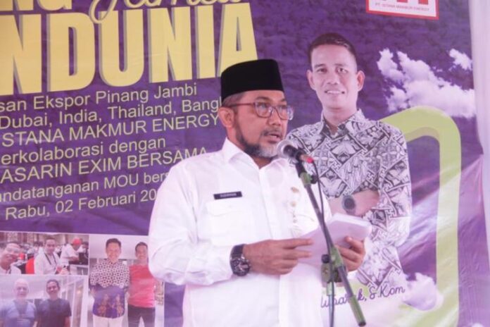 BERITA JAMBI – Tak hanya sawit dan karet, komoditi perkebunan Jambi tengah mengeliat dengan komoditi Pinang. Punya nilai tinggi dan pasar luar, Sekda Provinsi Jambi, Rabu (2/2/2022) lepas ekspor pinang.