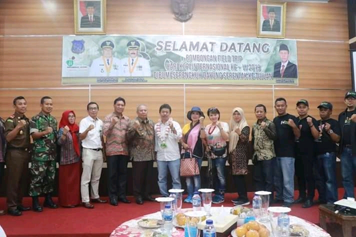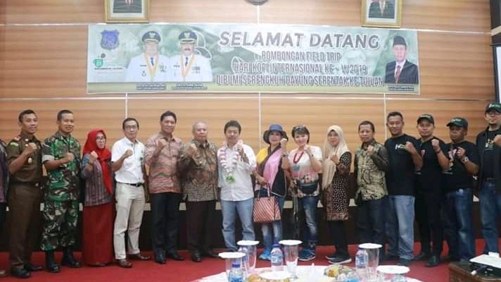TANJABBAR – Bupati Tanjung Jabung Barat Dr Ir H Safrial M.S menyambut Kunjungan rombongan peserta Field Trip hari kopi internasional tahun 2019 di Aula Rumah Jabatan Bupati Tanjung Jabung Barat, kamis (03/19).