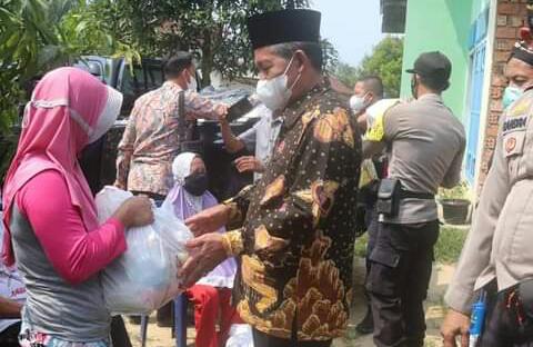 Abdullah Sani yang di dampingi oleh Kapolsek Sungai Gelam dan Camat Sungai Gelam beserta Jajaranya, menyampaikan bantuan sembako secara simbolis.