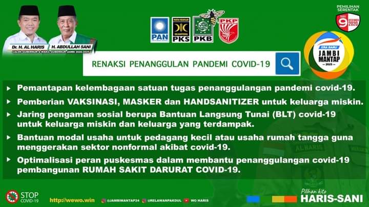 Ada 6 Renaksi penting yang akan diterapkan Al Haris-Abdullah Sani jika dipercaya menjadi Gubernur-Wakil Gubernur Jambi, khusus penanggulangan Virus Corona.