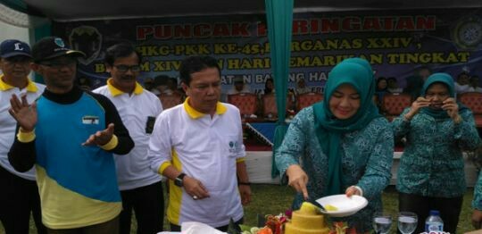 Peringatan hari kesatuan gerak PKK di Kabupaten Batanghari dilaksanakan bersamaan dengan peringatan Bulan Bhakti Gotong Royong, puncak peringatan Harganas, dan hari Gemar Makan Ikan tingkat kabupaten yang dipusatkan di Desa Simpang Karmeo Kecamatan Bathin XXIV. (Ali Kucir)