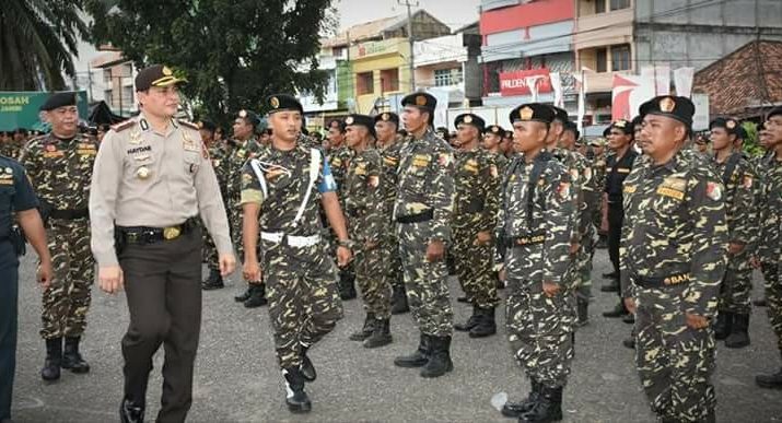 JAMBI – Wakapolda Jambi Kombes Pol Drs Ahmad Haydar. SH. M.M, Sabtu (05/05) menjadi Inspektur Upacara Apel Banser dan Istiqosah gerakan Pemuda Ansor Propinsi