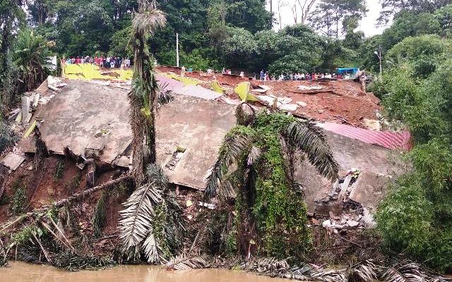 MERANGIN- Sepuluh unit rumah toko (ruko) di tikungan taman Bukit Tiung, Bangko, ambruk hingga masuk ke Sungai Batang Masumai, Rabu pagi (16/1) atau sekitar pukul