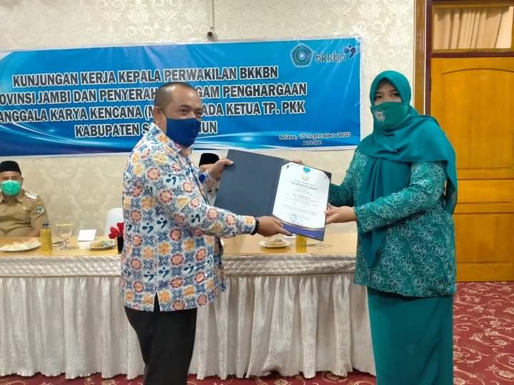 Tak ayal, saat Kunjungan Kerja kepala Perwakilan BKKBN Provinsi Jambi, dan penyerahan piagam penghargaan Manggala Karya Kencana (MKK), kepada ketua TP PKK Kabupaten Sarolangun