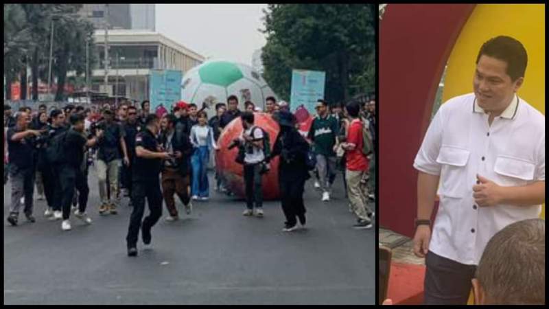 Area Bundaran HI hingga Sarinah padat merayap sejak pagi hari. Erick datang dan didampingi Pjs Gubernur DKI Jakarta, Heru Budi Hartono. Masyarakat benar-benar antusias menyambut kehadiran mereka.