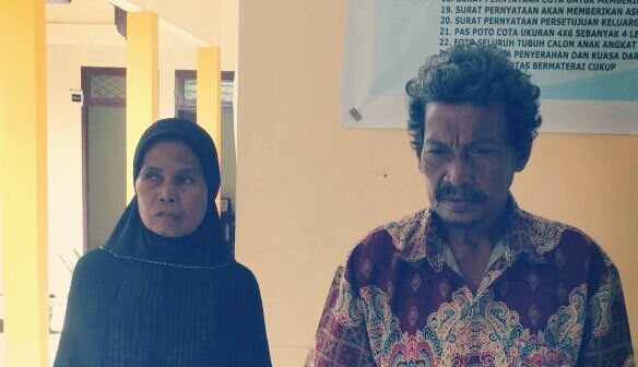 SENGETI – Sarona (56) beserta suaminya, salah satu peserta penerima Program Keluarga Harapan asal Desa Kedemangan, Kecamatan Jaluko, Kabupaten Muarojambi, Rabu (6/9) datangi kantor Dinas Sosial Muaro Jambi.