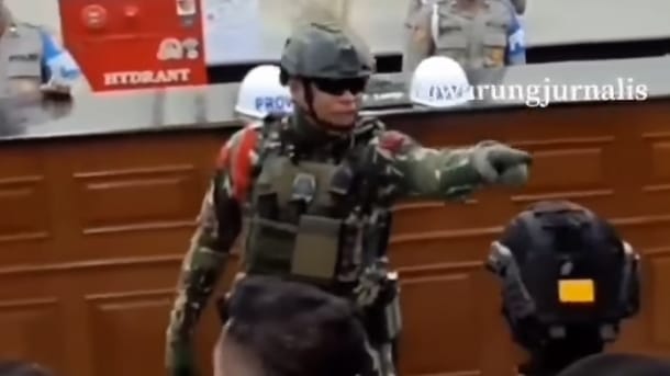 Anehnya, anggota Brimob yang membentak awak media tepatnya berada di samping kanan Kadiv Humas Polri Irjen Dedi Prasetyo dan Karopemmas Divhumas Polri, Brigjen Ahmad Ramadhan.