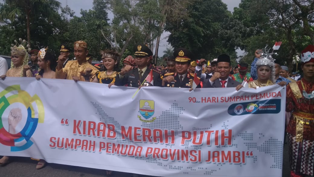 Selepas upacara, Kapolda Jambi, Danrem, Pejabat OPD, Unsur Forkompimda, Tokoh Masyarakat, dan Pelajar menggelar Kirab Merah Putih Sumpah Pemuda Provinsi Jambi dengan rute lapangan Kantor Gubernur Jambi – Simpang RSUD Raden Mattaher Jambi dan Kembali Lagi ke Lapangan Kantor Gubernur Jambi.(*)
