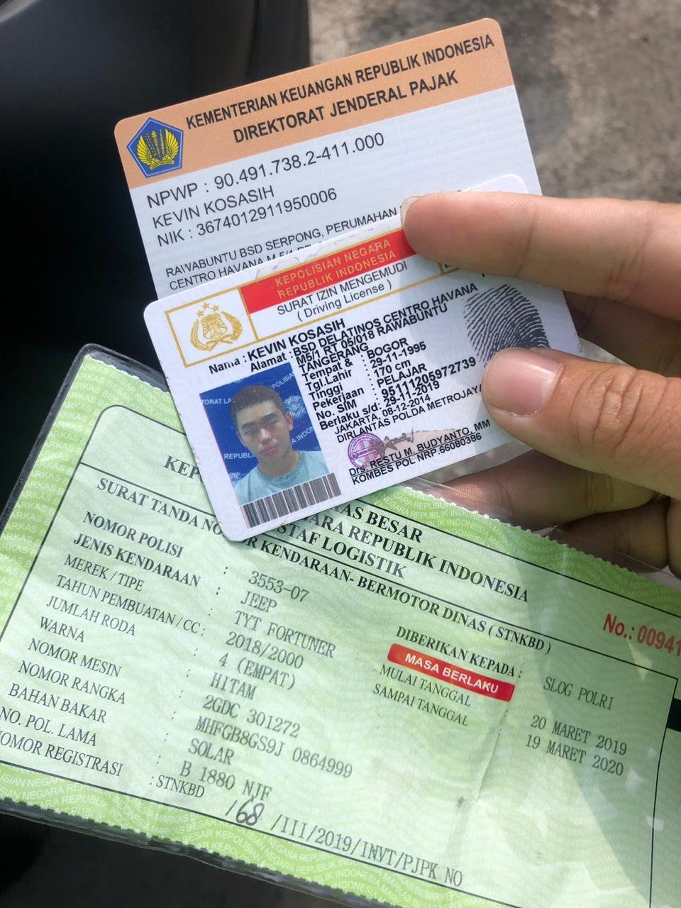 Iring-iringan tersebut diberhentikan Kanit, dan mendapati bahwa pengemudi adalah pelajar dengan nama Kevin Kosasih dengan alamat di BSD Tangerang dan bukan anggota Polri. Kevin yang warga keturunan ini didapati mengemudikan Fortuner didampingi seorang wanita.