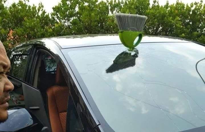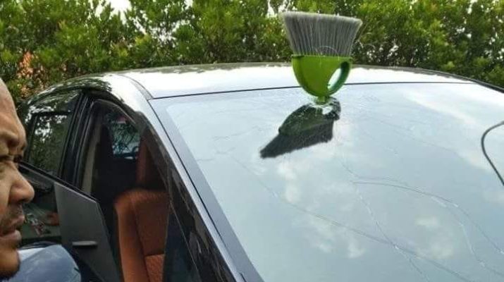 DUNIA maya tak hentinya memunculkan hal baru, unik dan aneh. Kejadian kali ini, dikirimkan oleh akun bernama Salim di Facebook. Dimana, ia mengaku mendapat musibah saat parkir di bawah apartemen BSD, belakang Polsek Serpong. Mobil Innova keluaran 2016 itu, tertancap sapu dari lantai atas.