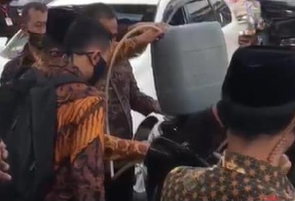 Di media sosial, viral potongan video mobil RI-2, kendaraan dinas Wakil Presiden (Wapres) Ma’ruf Amin, sedang diisi bahan bakarnya menggunakan jeriken.