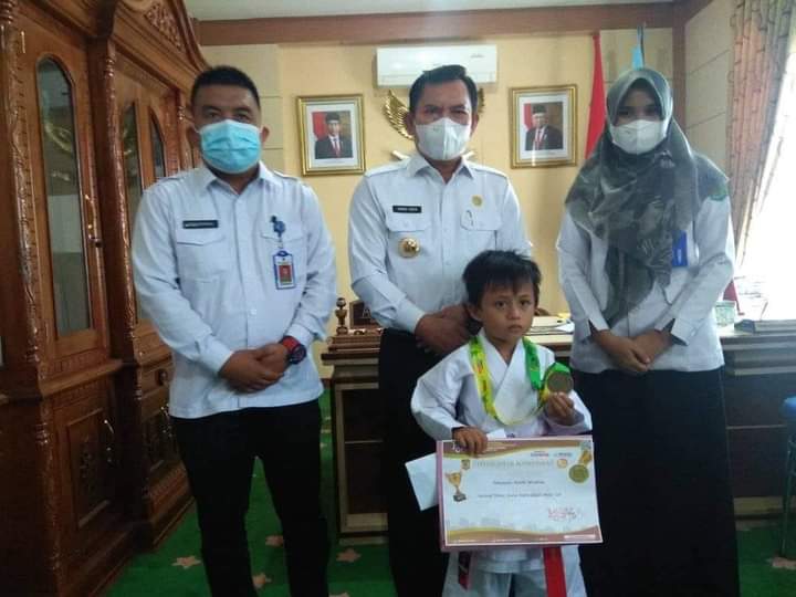 SUNGAI PENUH – Walikota Sungai Penuh, Ahmadi Zubir beri apresiasi sekaligus penghargaan kepada Atlet Karate Cilik di Sungai Penuh, yang raih prestasi internasional.