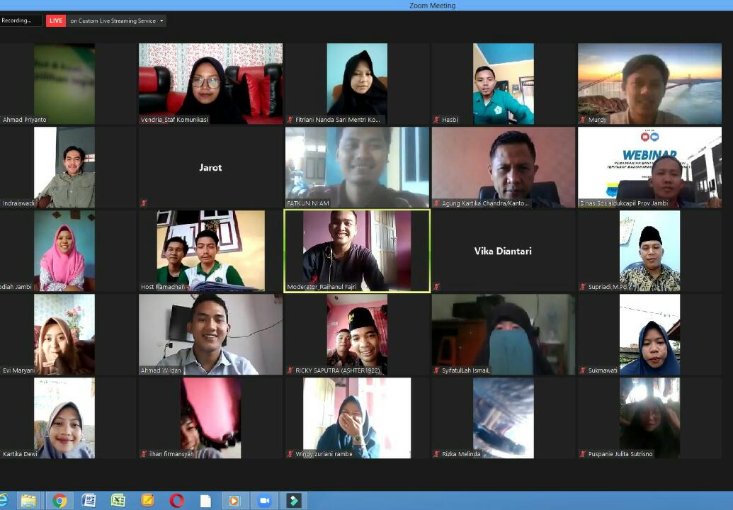 BERITA JAMBI – Webbinar BEM Stai Ma’arif Jambi, berkolaborasi dengan Dinas Sosial dan Pencatatan sipil Provinsi Jambi, serta juga Kantor Pos Indonesia Provinsi Jambi gelar diskusi secara online.